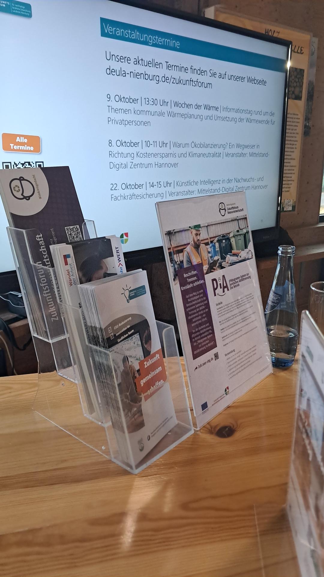 Am 23. September war die WIN mit ihrem jährlichen Technologietransfertag zu Gast im Blattpavillon der DEULA-Nienburg GmbH. Dieses Treffen ist der Pflichttermin für innovative Unternehmen im Landkreis und konnte auch diesmal mit interessanten Impulsen und Themen aufwarten. Als Kooperationspartner der Veranstaltung konnten wir die Arbeit und aktuellen Themen des Zukunftsforums präsentieren. Insbesondere gefreut hat uns die Begleitung an unserem Stand durch Maik Ahrens von Ahrens Solartechnik GmbH & Co. KG mit Informationen zum Endlos-Energiezentrum Schaumburg. Das EEZ ist ein energieautarkes Gewerbegebäude, welches die Strom- und Wärmeerzeugung durch die kombinierte Nutzung von Photovoltaik, Wasserstofferzeugung und -nutzung zur vollständigen Energieerzeugung des Baus nutzt. Dieser innovative Schritt eines Handwerksunternehmens kann ein Beispiel für Quartierslösungen sein um die Chancen durch Erneuerbare Energien im Landkreis zu ergreifen. Ergänzend dazu hatten wir Beispiele des Piktogrammsystems zur einfachen Abfalltrennung des Zukunftsforums Ressourcenwirtschaft im Gepäck.
